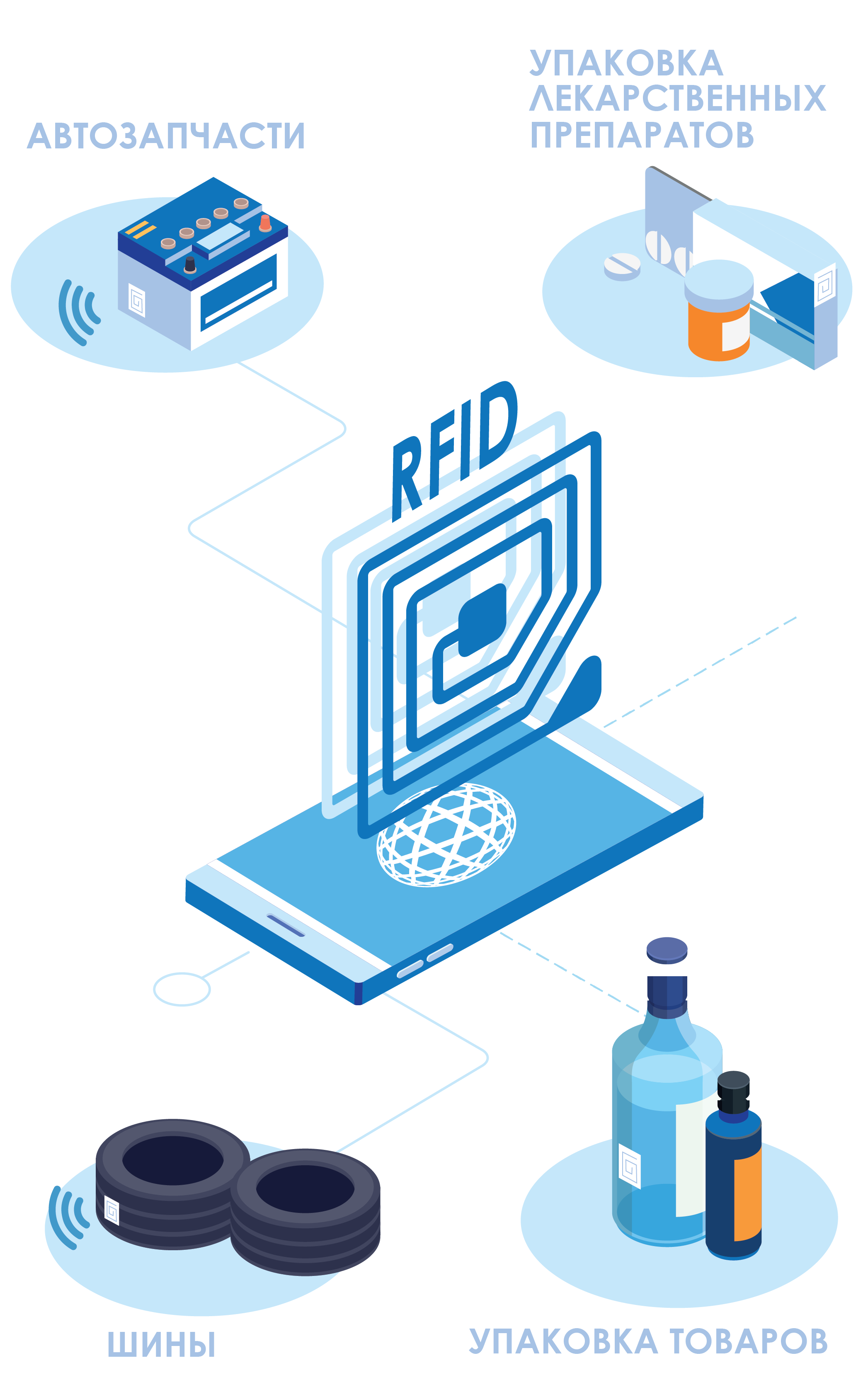 • Продукция оснащается радиометками • В приложении подтверждается подлинность • Фиксируется оборот продукции Контролировать подлинности можно со смартфона