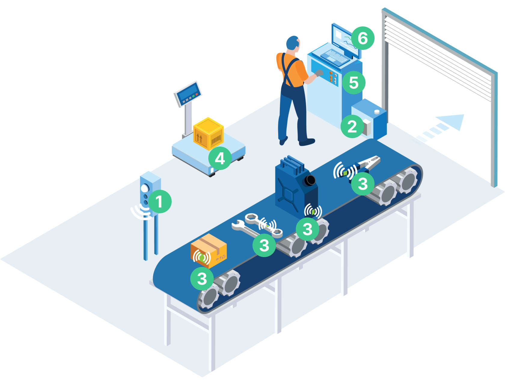 Перемещение объектов запускает реакцию системы идентификации: сигнал, событие для учётной системы и т. д.